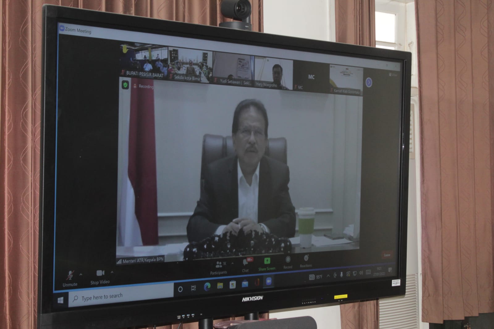 KOTA BIMA, TUPA NEWS.- Sekretaris Daerah Kota Bima, Drs. H. Muhtar Landa, MH menghadiri Sosialisasi Program Pendaftaran Tanah Sistematis Lengkap (PTSL) Tahun 2022 yang diselenggarakan oleh Kementerian Agraria dan Tata Ruang (ATR) melalui Video Confrence padaa Kamis (27/01/2022).